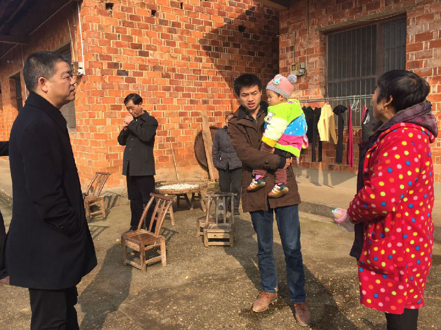 12月15日,常德农商银行鼎城支行梁钲东行长、彭前副行长一行来到扶贫点村——谢家铺镇古龙山村,调研脱贫攻坚工作。