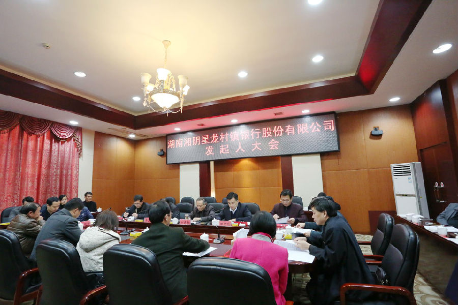 12月22日上午,湖南湘阴星龙村镇银行发起人会议在湘阴县湘阴宾馆圆满召开,出席会议的发起人股东共20家,占股份公司股份总数的100%。湘阴县委常委、常务副县长林恒求、县人民政府副县长余建新、岳阳银监分局湘阴监管办事处主任钟信、合作非现场监管科徐菁华、我行监事长田万顷参加了会议。会议由湖南九野律师事务所律师进行全程见证。