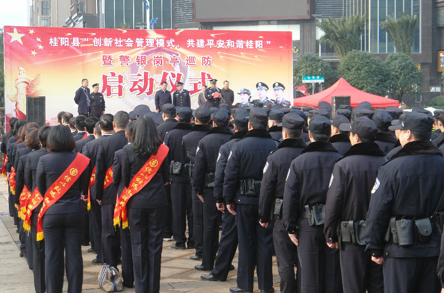 12月29日上午,“桂阳县‘创新社会管理模式,共建平安和谐桂阳’暨警银岗亭巡防启动仪式”在该县翡翠公园警银岗亭前举行,县四大家、公检法、信用联社、电力局、电信局、街道办等单位领导及相关人员参加开业仪式。县委书记彭生智等县领导出席开业仪式并为岗亭揭幕,标志着该联社今年设立的10家警银岗亭自助银行正式营业。