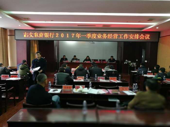 2016年1月8日,古丈农商银行在总行六楼会议室召开一季度工作会议,总行领导班子成员、各部室负责人、支行长35人参加会议。