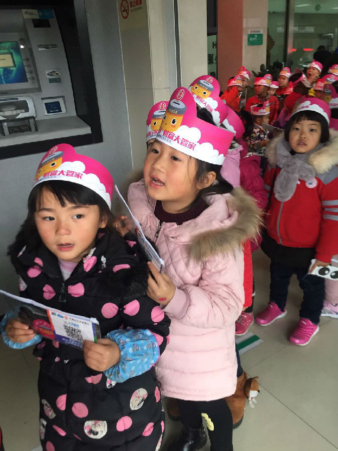 上午九点半,一群特别的“客户”排着整齐的队伍来到了营业大厅,他们是来自春蕾幼儿园的小朋友们。按次序坐好后,员工给每位小朋友发一张“门禁卡”、一本“记账薄”。通过“门禁卡”小朋友可以自由参观支行的营业厅,熟悉员工的工作环境;“记账薄”让小朋友用来记录每天的支取情况,培养储蓄习惯。在参观支行环境的同时,员工将银联扫码的二维码图标发给每位小朋友,引导他们了解这张“小卡片”的含义,通过小朋友把扫码支付的信息带给家长;春蕾幼儿园是支行银联扫码入网商户,在幼儿园负责人的配合下,动员家长运用扫码支付来替孩子们缴纳学费,向小朋友介绍这张“小卡片”可以买到许多实惠的自己喜爱的商品。最后,支行还组织小朋友进行了扫码知识趣味抢答赛,加深孩子们对于扫码支付的印象,每位小朋友还获赠了带有农商银行图标的储蓄罐,这趟“旅行”都是“满载而归”。
