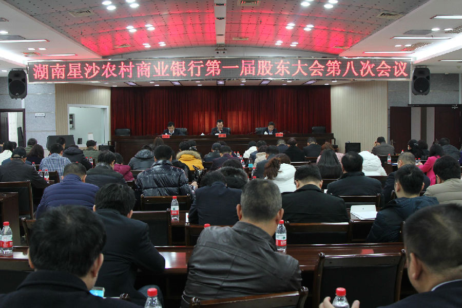 1月12日,星沙农商银行在总行十楼会议室召开了第一届股东大会第八次会议,全体股东参加了会议,会议由王进董事长主持。