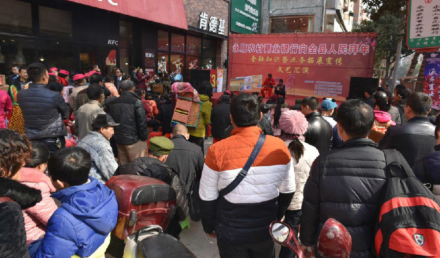 据悉,此次文艺活动永顺农商银行统一部署,精心组织,在宣传内容上除了整体形象宣传、业务咨询和现场演示外,还重点推介了该行福祥便民卡和贷记卡。