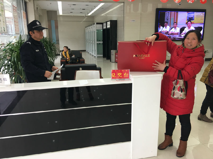 “农商银行的活动办得太好了,为新年增添了不少惊喜和欢乐!”春节上班第3天,来自石门县楚江镇的客户金大姐在石门农商银行营业部“欢乐大转盘”兑奖台领取到了自己的二等奖奖品——一套包装精美的梦洁家纺四件套。