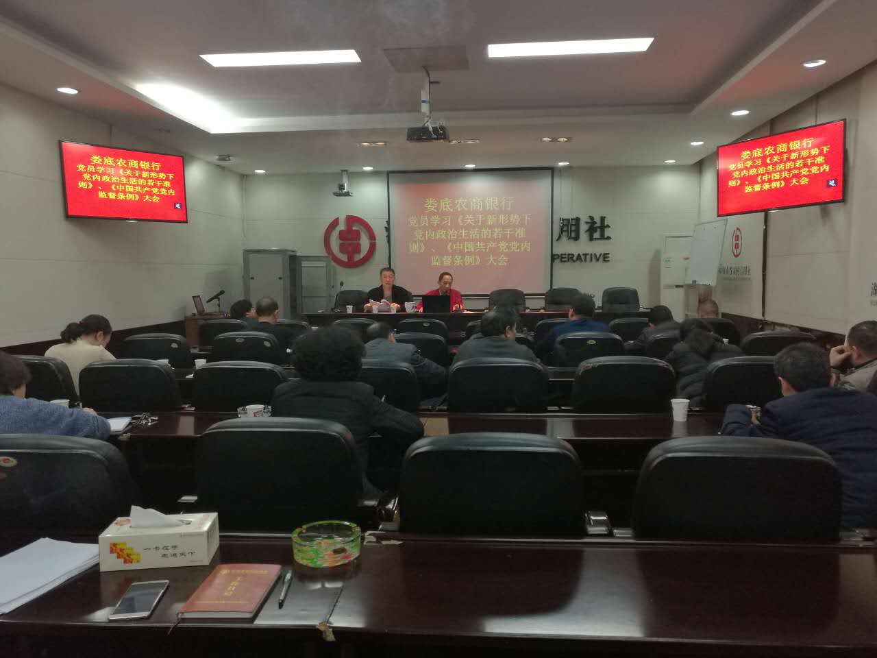2月16日晚,娄底农商银行党委副书记谢进华同志组织机关全体党员集中学习《关于新形势下党内政治生活若干准则》,总行党委班子成员、机关党员共60余人参加学习。
