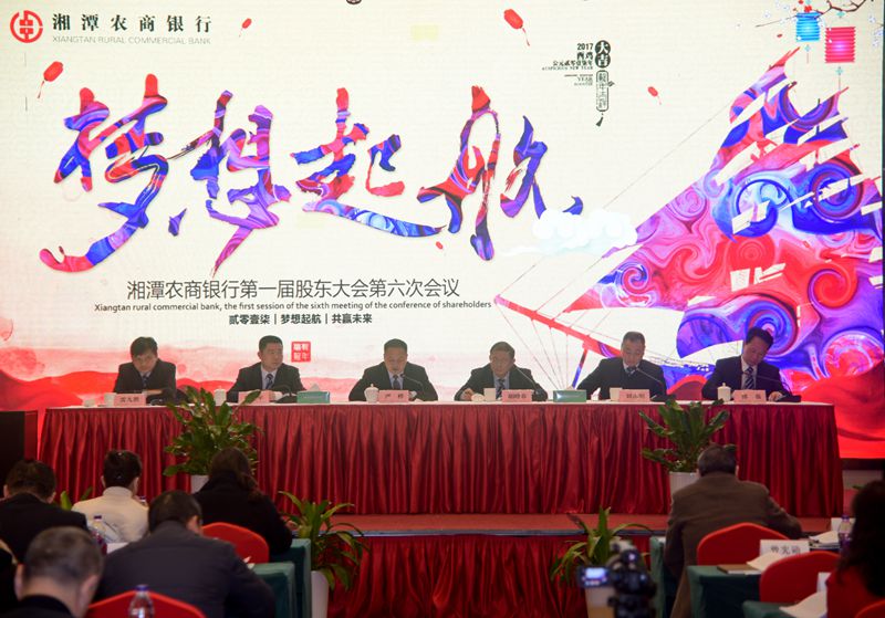 2月9日,湘潭农商银行第一届股东大会第六次会议在福星凯莱大酒店召开。湘潭农商银行严桦董事长、胡晗春行长、陈卫平监事长及班子成员、中层管理人员,140余名股东出席了会议,湘潭银监分局主监管员、见证律师等应邀列席了会议,会议由胡晗春行长主持。