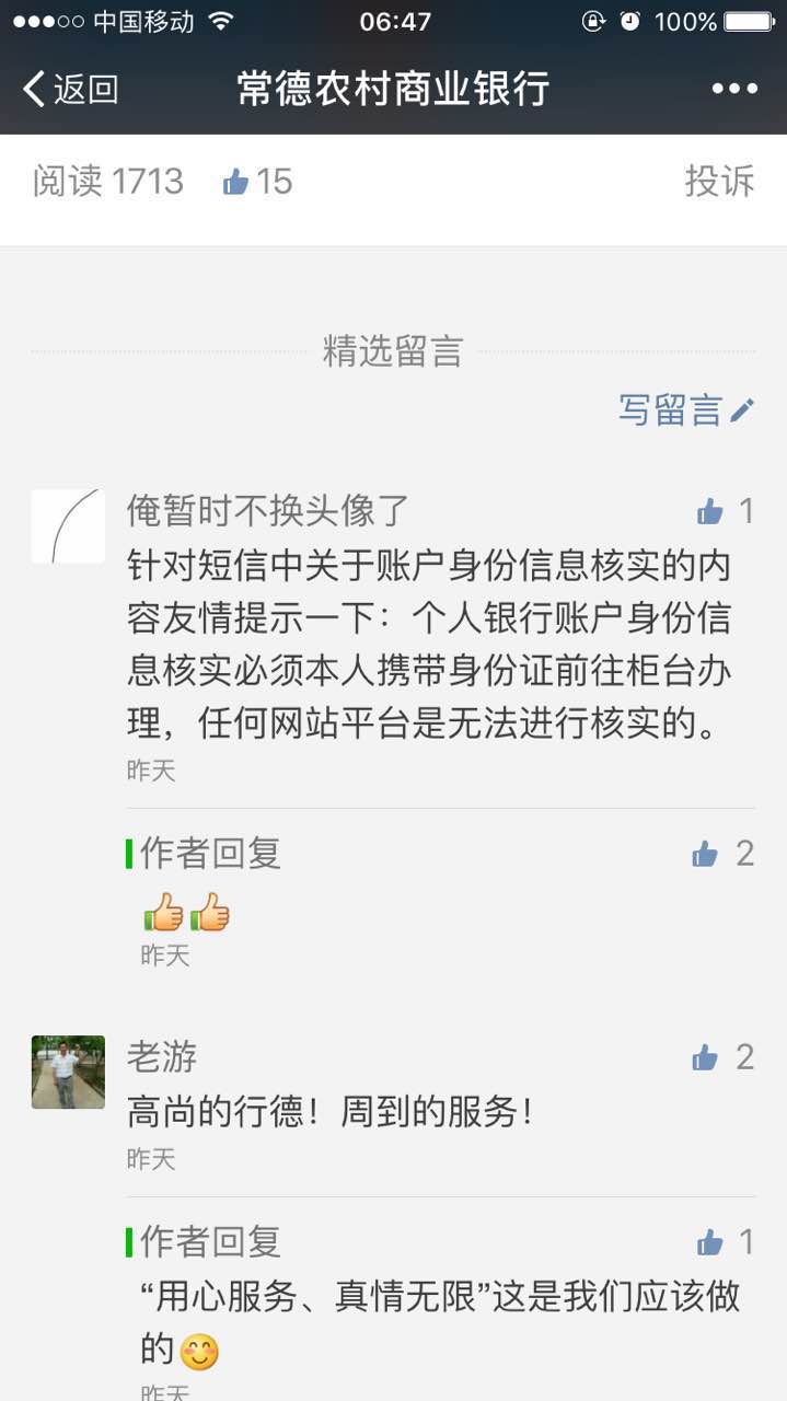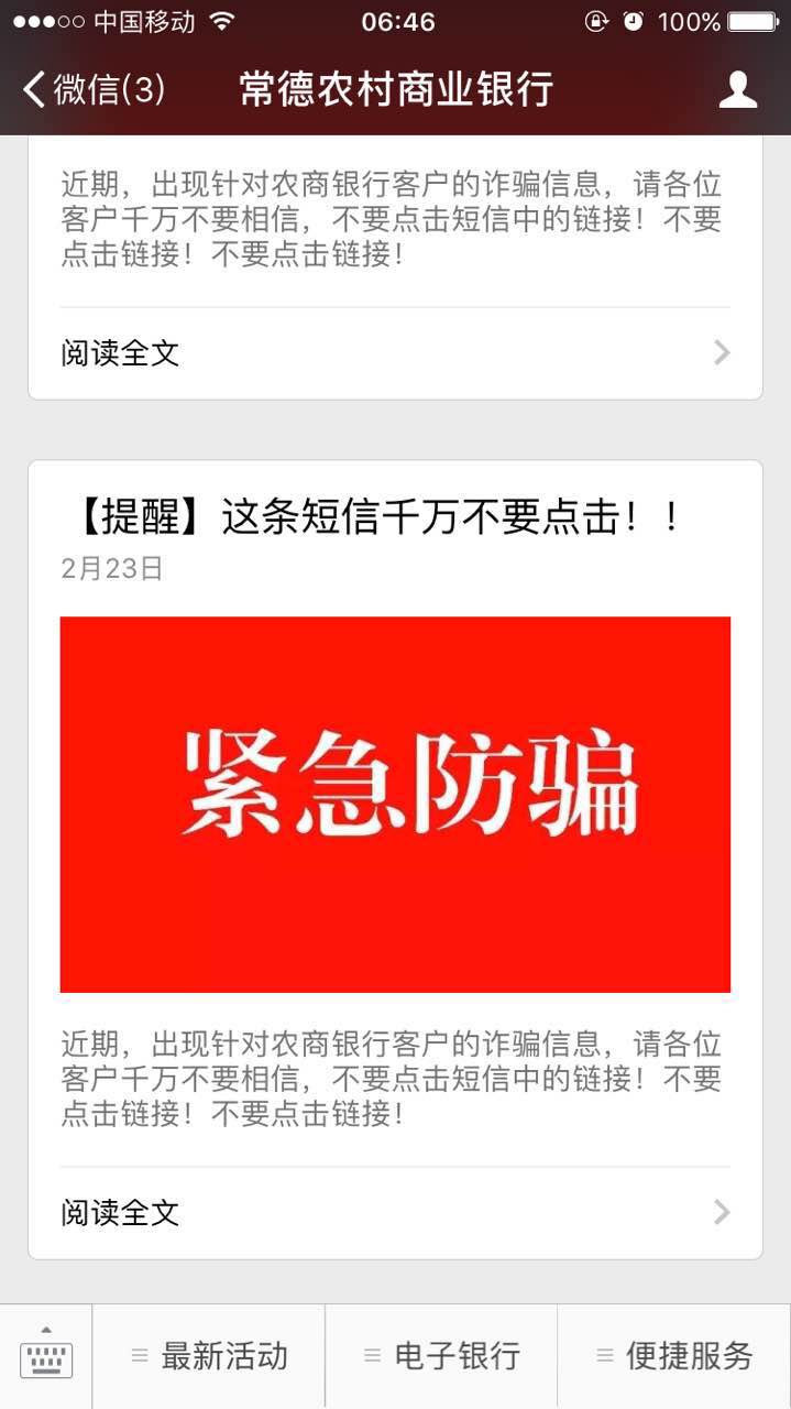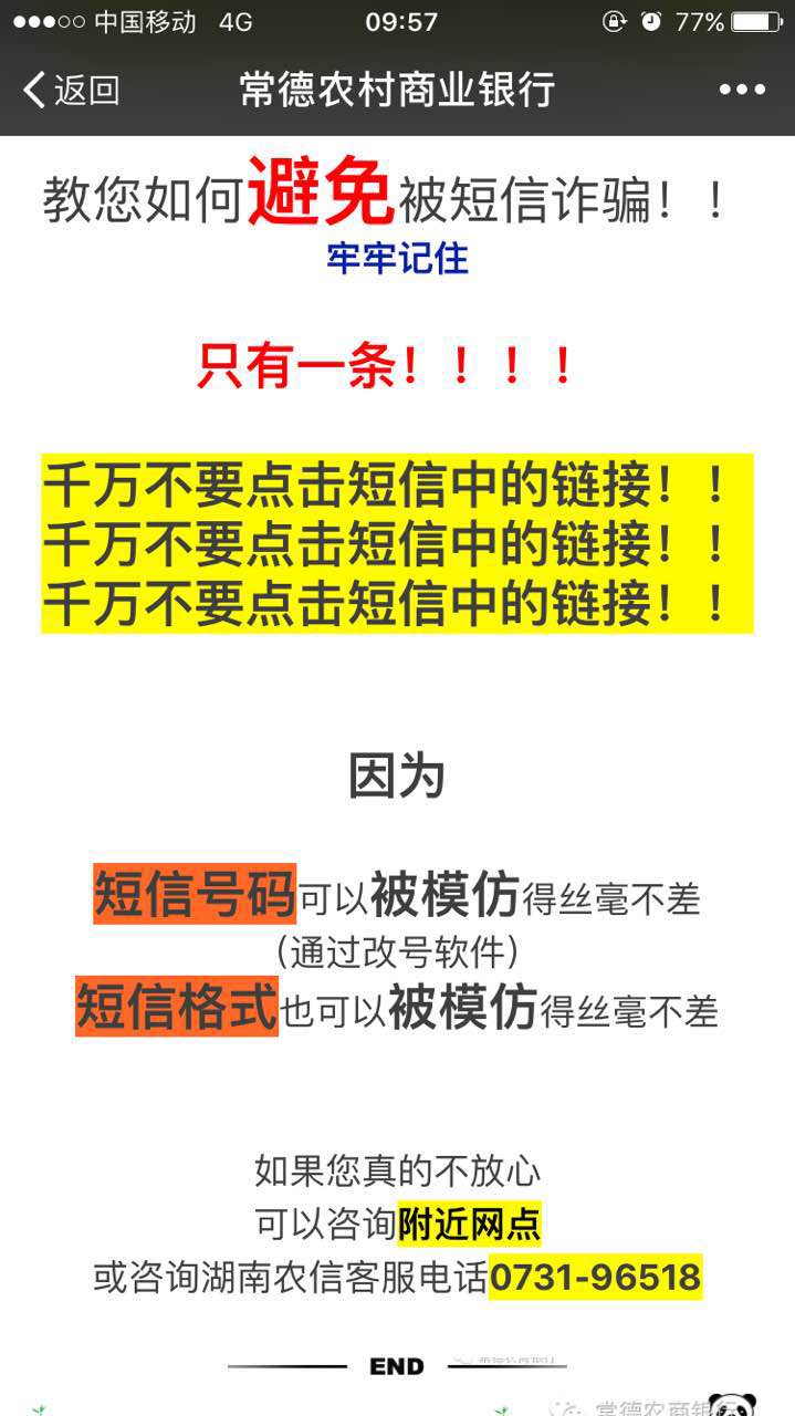 常德农商银行了解情况后,为保障客户的账户、资金安全,维护“农商银行”的品牌口碑,践行“用心服务、真情无限”的理念,迅速反应,牢记“快”字诀,利用微信公众号受众广、传播快、效率高的优势,迅速发布“紧急防骗”的信息推送,为客户铸造电信诈骗“防护盾”,短短4个小时,信息浏览量达1500余次,受到了客户“高尚的行德!周到的服务!”的积极评价,效果良好。