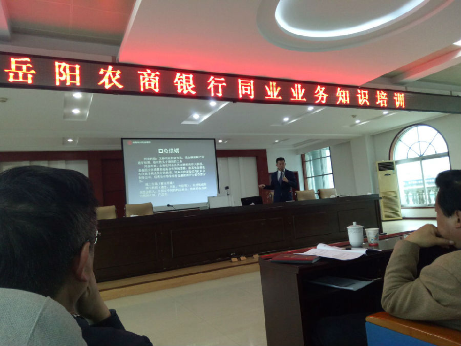 岳阳农商银行董事长黄亚平在会上表示:举办此次培训班旨在应对当前经济下行的形势,推动岳阳农商银行经营结构快速转型、金融市场业务持续健康发展。通过此次培训,让大家对金融市场有更深的理解,掌握金融市场的常规知识,更新原有的金融理念,适应我行经营结构转型的发展要求。