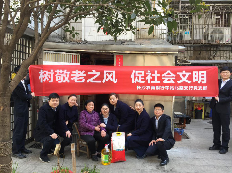 为弘扬“关爱老人、尊敬老人、孝敬老人”的传统美德,向雷锋同志致敬。3月2日,长沙农商银行车站北路支行开展了“树敬老之风,促社会文明”的关爱老人活动,为西湖社区的空巢老人送去了温暖,贡献出自己的一份力量。
