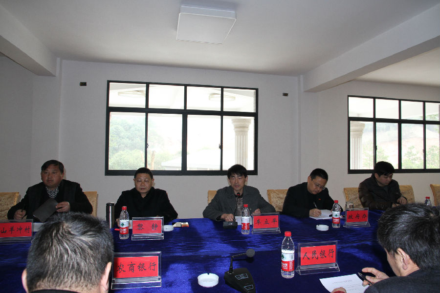 在随后召开的金融扶贫工作会上,与会人员就将山羊冲村打造成“农业为主、旅游为辅、农游结合”的全国一流美丽乡村建设招商引资问题进行座谈。各家金融机构负责人介绍相关金融政策,沟通合作意向。