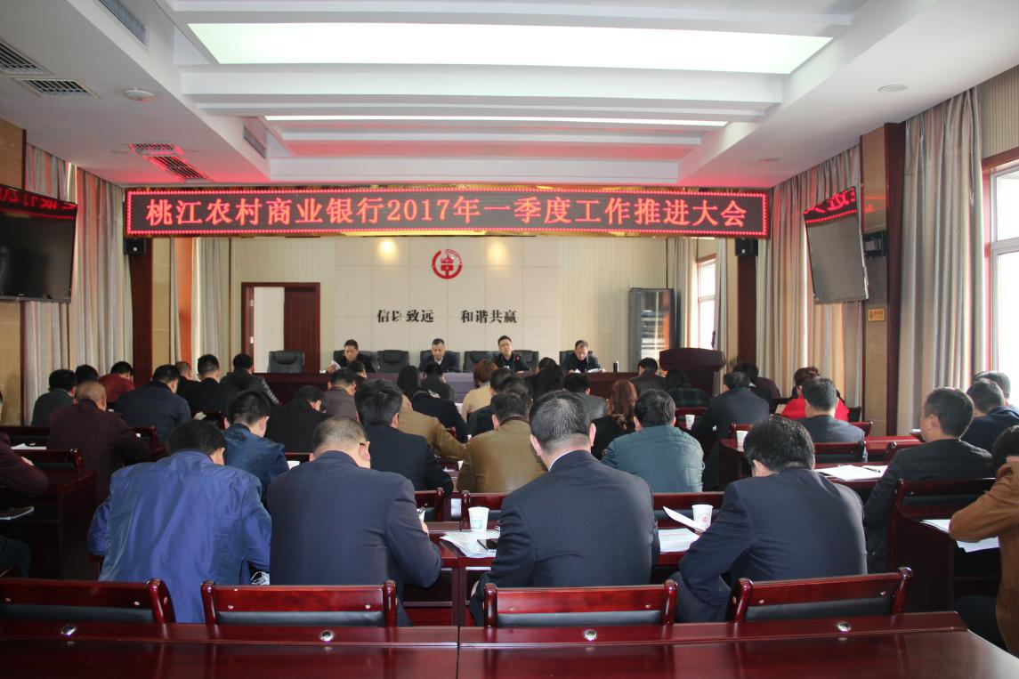 为顺利完成一季度工作任务,实现一季度“开门红”工作目标,近日,桃江农商银行召开2017年一季度工作推进大会。总行党委成员、部室经理、支行正、副行长参加会议。