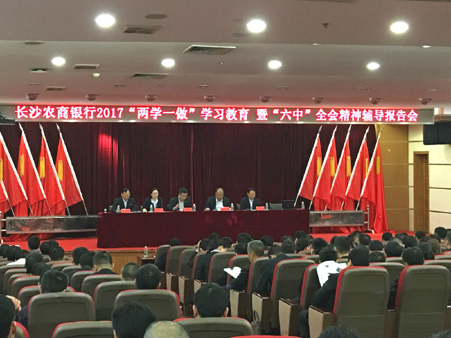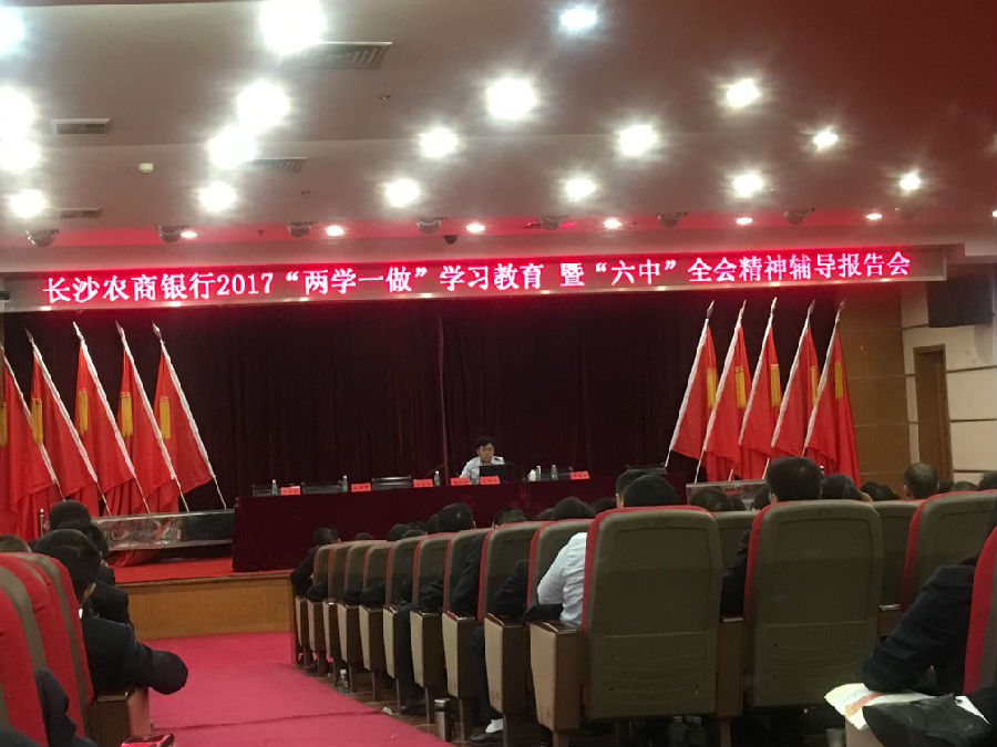 为进一步学习贯彻党的十八届六中全会精神,近日,长沙农商银行举办了十八届六中全会精神专题学习辅导报告会,邀请中央党校党史部教研室主任沈传亮教授作了“全面从严治党—十八届六中全会精神解读”和“学习党章、遵守党章,提高党性修养”两堂专题辅导报告。总行领导班子、部室正副经理,党总支部、党支部委员和部分党员代表共300余人参加报告会。会议由行党委委员、监事长李训明同志主持。