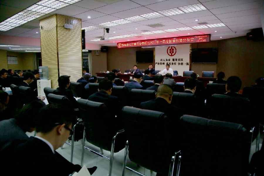 4月11日晚七点,桂阳县联社抢抓休息时间组织召开了一季度经营形势分析会,班子成员、部室负责人和信用社主任参会。