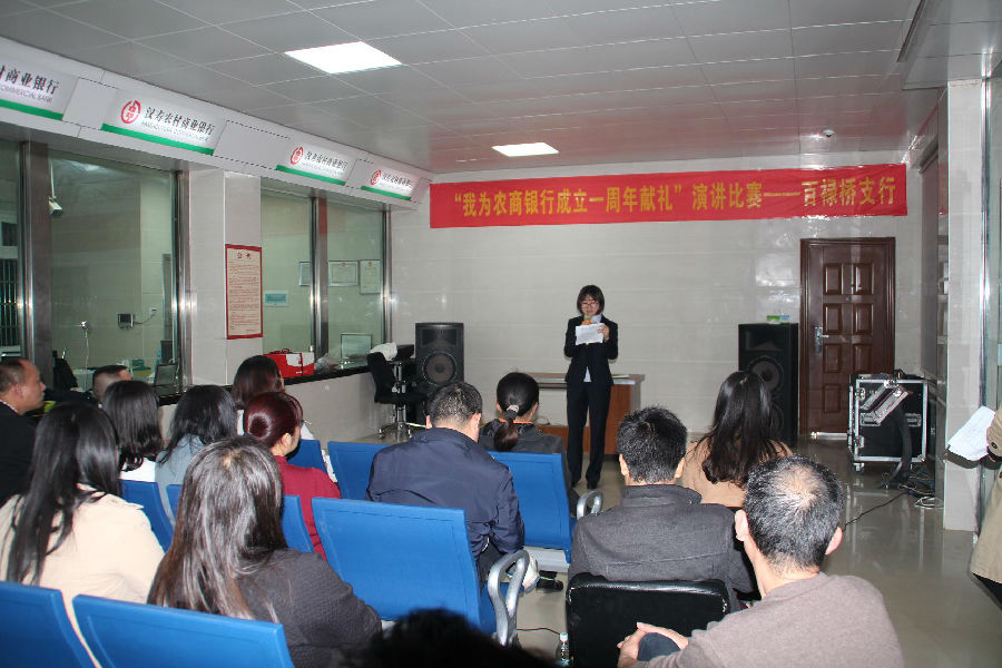 4月14日晚,汉寿农商银行百禄桥支行举办了“我为农商行周年庆献礼”青年演讲暨友情联谊活动。此次活动邀请了百禄桥镇政府、派出所、中学等单位参加,活动现场气氛热烈,得到了大家的一致好评。