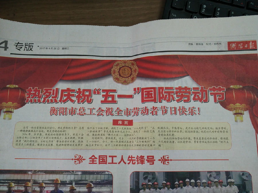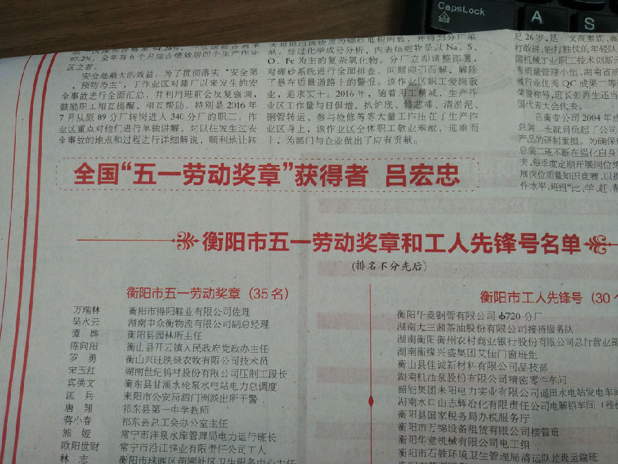 值“五一”劳动节即将来临之际,传来喜讯,衡阳农商银行党委书记、董事长吕宏忠荣获全国“五一劳动奖章”。 这一喜讯被刊登在4月26日《衡阳日报》专版显目位置。