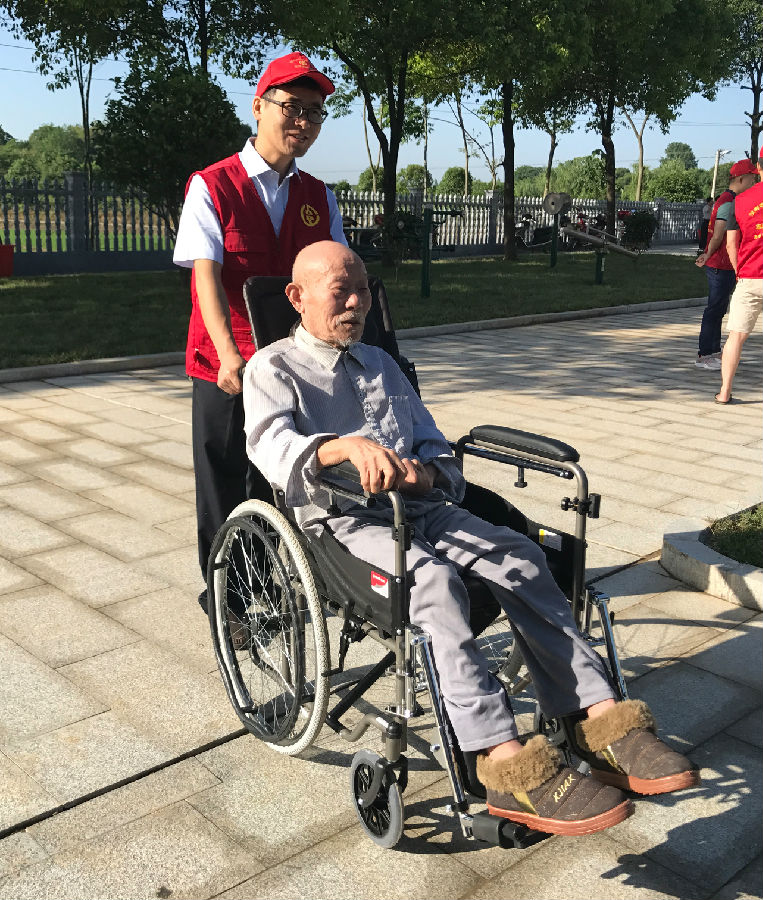 “这个轮椅就是好,很舒服,很感谢你们!”许久不曾出门,看到新轮椅的马老感动万千。这天阳光很好,经过数月的翻修,敬老院已不是马老印象中的样子了。志愿者们推着轮椅,带马老看看敬老院的新变化,并教他简单地操作轮椅。不少在院老人都围拢过来,观看这辆“爱心轮椅”,并不停称赞农商行志愿者们的善举。