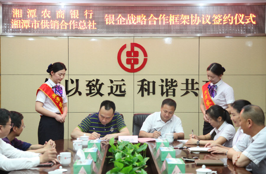 湘潭市供销合作总社是我市流通领域的骨干力量,以服务“三农”为根本,主要承担农村流通网络建设、推动农村合作经济发展、社有资产经营管理、指导全市有关农业生产资料和农副产品政策性业务经营等职责任务,是服务三农发展,促进新农村建设的主力军。接下来,我行将为市供销总社提供包括信贷支持、融资咨询、账户开立、代发代付、电子银行业务在内的一揽子金融服务方案,我行也将借用供销系统强大的服务网络优势,设立自助银行、惠农支付点等,为广大城乡居民提供便民惠农金融服务。