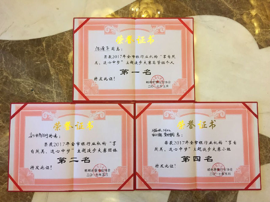 5月13日,安仁农商银行13名员工参加了由郴州市银行业协会组织的“享自然美,追心中梦”为主题的徒步比赛活动,并取得了优秀成绩,载誉而归。