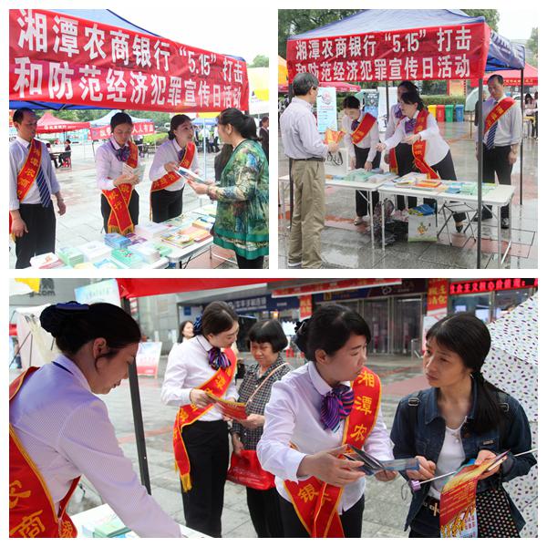 5月15日,为帮助广大市民和社会各界识别和防范经济犯罪,配合公安机关工作,湘潭农商银行在人行湘潭中支的组织下,在莲城步行街前坪摆摊设点,派出了由办公室、霞城支行、芙蓉支行组成的宣传团队,开展了主题为“打击和防范经济犯罪”的户外宣传活动。湘潭市公安局副局长杨笠新、人行湘潭中支副行长刘碧波亲临现场指导。