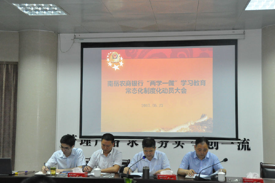 5月23日晚,南岳农商银行在总行四楼会议室召开“两学一做”学习教育常态化制度化动员大会,该行三十余名党员参加了此次动员大会。