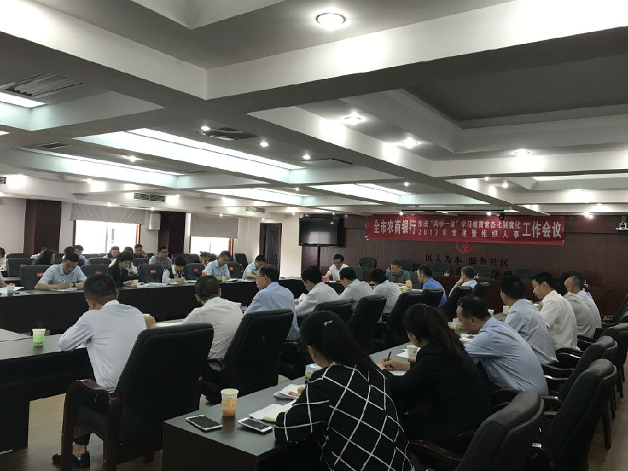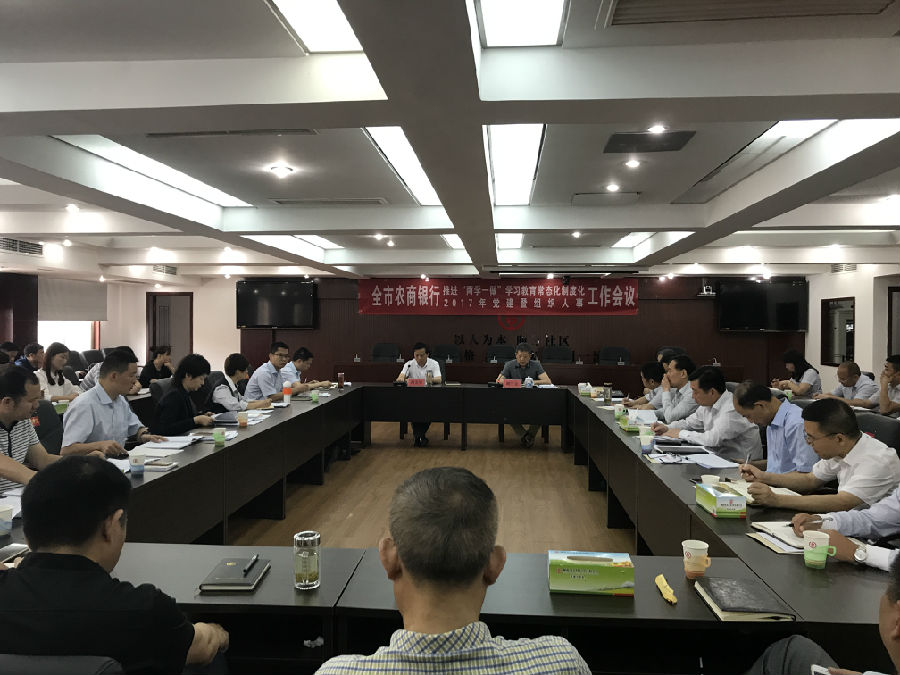 5月25日上午,常德办事处召开全市农商银行推进“两学一做”学习教育常态化制度化工作会议。办事处领导、各科室(中心)负责人、机关全体党员,各法人行党委书记、分管组织人事工作的班子成员、人力资源部经理、党务专干及人事专干参加会议。办事处党组成员、副主任胡三立主持会议。