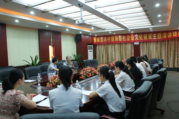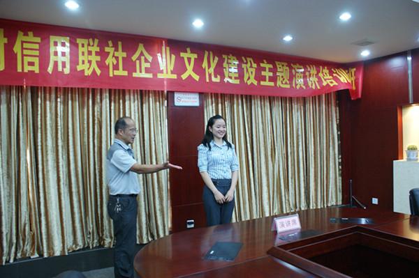 日前,为积极响应省联社开展的“建设企业文化年”活动,衡阳雁峰区联社特邀全国十佳演讲家、国家一级演讲家邓湘源老师开展了企业文化演讲培训。联社30余名员工参加聆听,12名演讲爱好者走上讲台,现场接受了邓老师的指导和点评。