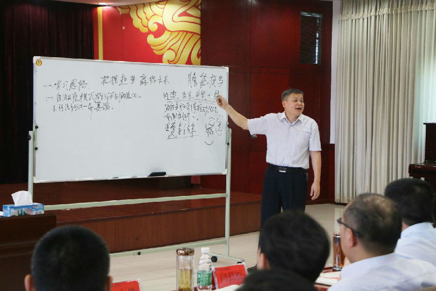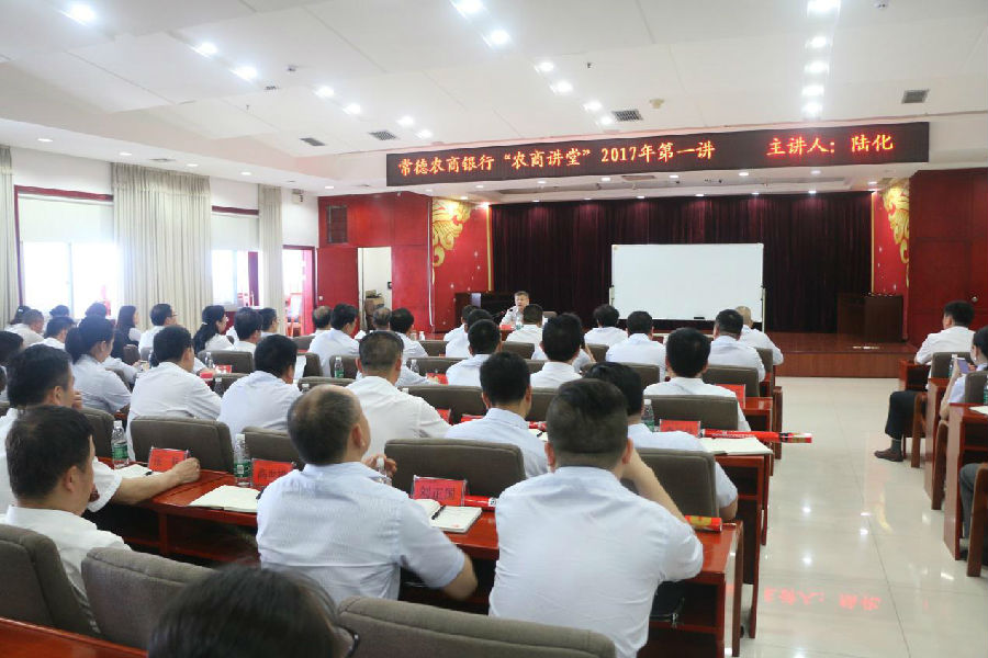 近日,常德农商银行首期农商讲堂隆重开讲,该行近200名中层骨干齐聚大会议室,聆听董事长陆化题为《把握趋势,赢得未来》的精彩授课。