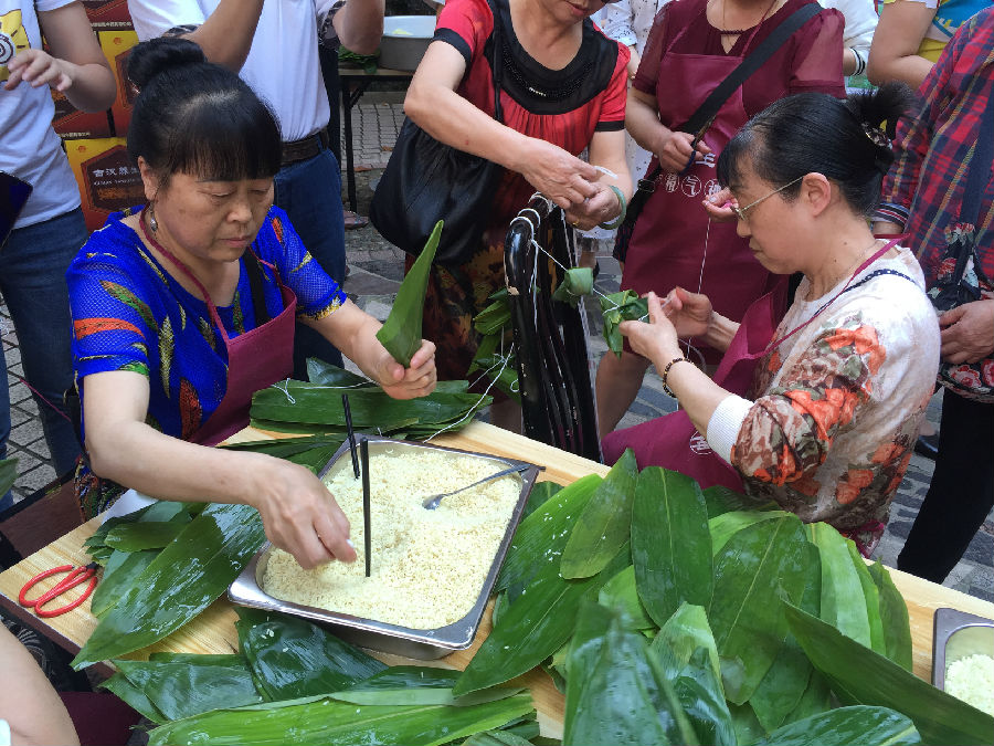 比赛在枫树岸社区圆梦广场举行,赛场里里外外被社区居民围得严严实实。一阵阵欢呼声中,包粽子大赛开始了,活动现场热闹非凡,经过一轮又一轮“包粽能手”快、准、巧的包扎,一个个粽子便诞生了,居民可将自己包好的粽子免费带走,也可以留下用来慰问社区的孤寡老人。包完粽子开始钓粽子比赛,桌子上整整齐齐摆放了一百个粽子,居民们站在桌子两旁,拿着提前准备好的“钓竿”在规定的时间粽子将粽子钓走。