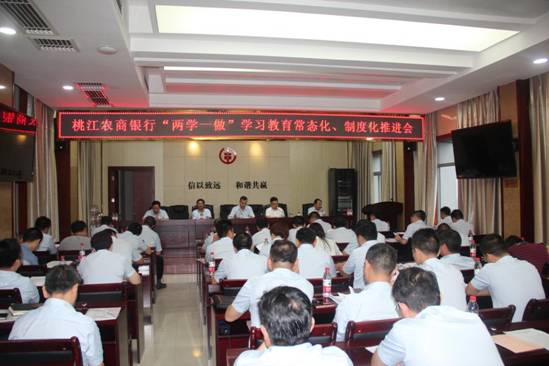 6月1日上午,在桃江农商银行七楼会议室召开了“两学一做”常态化制度化推进会。会议由总行行长张鹏同志主持,党委班子成员、部门经理、机关全体党员、各支部书记、党员代表共100人参加了会议。
