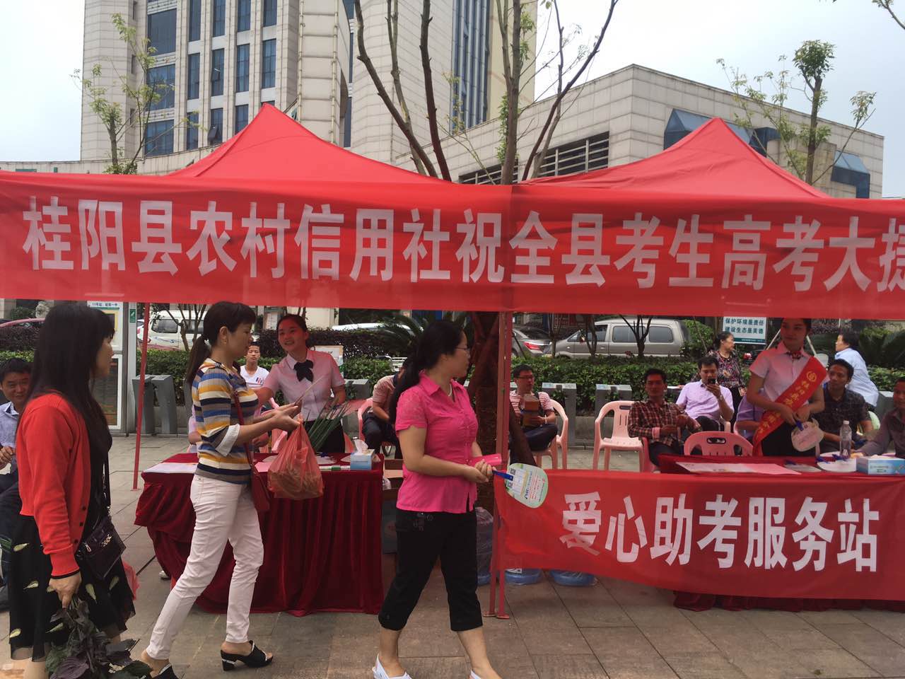 6月7日,一年一度的高考大幕开启,桂阳县3000余名考生参加考试。“桂阳县农村信用社爱心助考服务站”又一次亮相在考点前,为广大考生和家长提供爱心助考服务。
