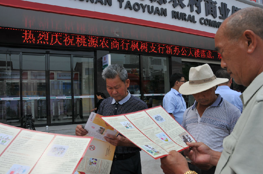 6月8日,适逢桃源农商银行枫树支行重装开业,前来办理业务的客户络绎不绝。总行借此机会开展“防范非法集资”宣传活动。