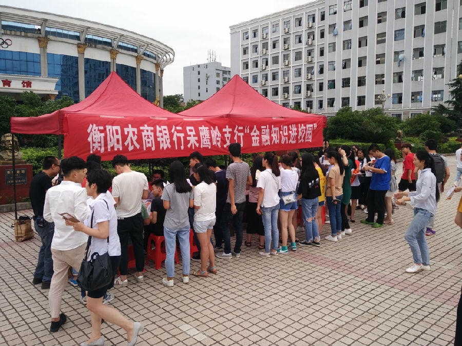 6月13日,衡阳农商银行呆鹰岭支行在湖南交通工程学院设点开展金融宣传,并举办了一场有关校园贷的金融知识讲座。此次活动由衡阳农商银行呆鹰岭支行和市场拓展部联合湖南交通工程学院举办,获得在校师生的热烈响应。