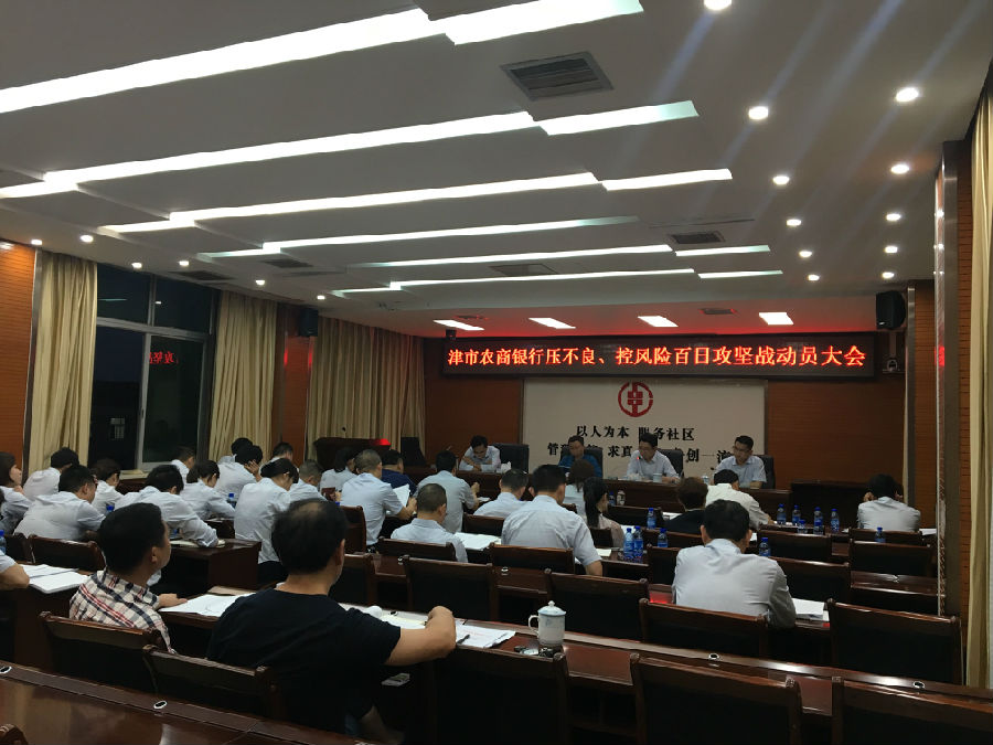 6月16日晚,津市农商银行“压不良、控风险”百日攻坚战动员大会在六楼召开,会议由副行长闫涛主持,该行班子成员、支行行长、部室经理、分理处负责人、委派会计参加了会议。