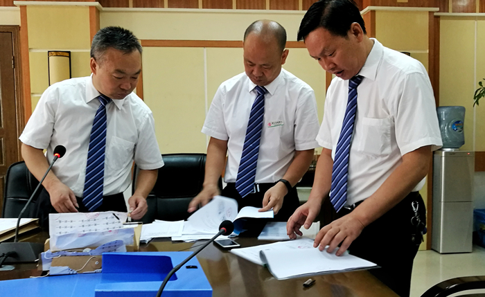 6月21日,洪江农商银行自助设备土建装饰工程开标评标会在总行二楼会议室召开,行长郑艳主持会议,行长助理、合规风险部等五部室经理组成采购评审委员会参加会议。