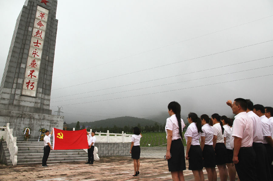 为纪念中国共产党建党96周年,深入推进“两学一做”学习教育常态化制度化,激励党员更好地发挥先锋模范作用,6月30日上午,石门农商银行机关党支部在石门县革命烈士陵园开展庆“七一”主题党日活动。