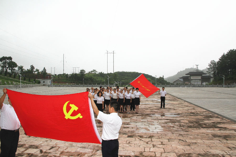 所有党员向着党旗和烈士纪念碑庄严宣誓