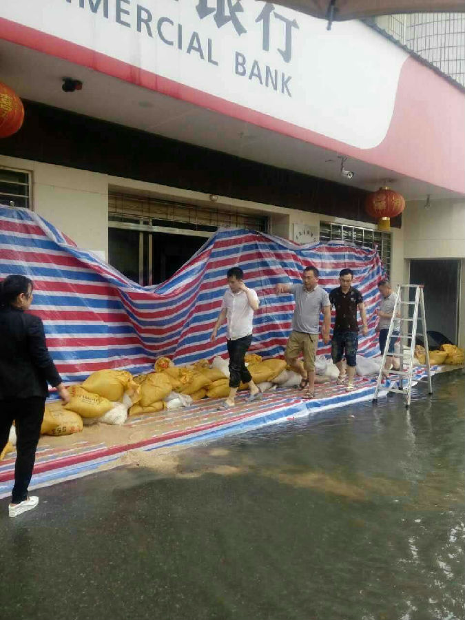 7月1日前后,岳阳地区迎来特大暴雨,受连续雨水天气的影响,岳阳农商银行郭镇支行发生洪水险情,为确保人身安全,减少财产损失,保障金融服务,在岳阳农商银行总行领导的指挥调度下,郭镇支行全体一线员工开展抗洪抢险工作。