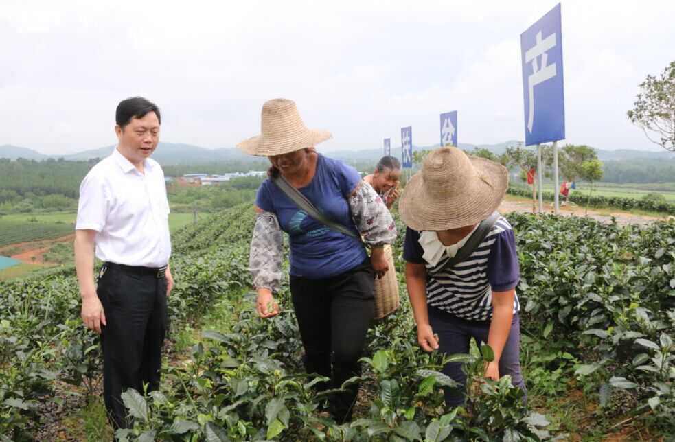 宜章农商银行董事长郑兴国深入和宜莽山红茶产业示范园与贫困户交流