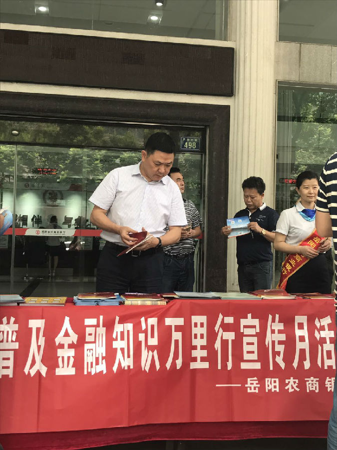 为加强公众金融知识教育,引导和帮助消费者掌握金融知识,提高群众金融安全意识,根据岳阳市银行业协会的统一部署,7月6日上午,岳阳农商银行开展普及金融知识万里行活动启动仪式。