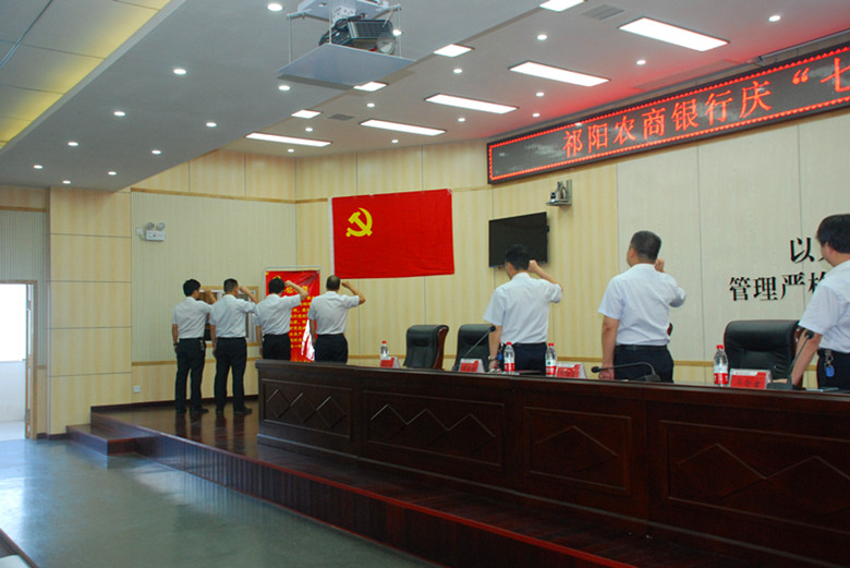 7月7日,在铿锵有力的国歌声中,祁阳农商银行庆“七·一”暨抗洪抢险表彰大会隆重召开,受表彰的先进集体、先进个人和总行机关全体党员100余人参加了会议,会议由党委委员、纪检书记黄荣林主持。