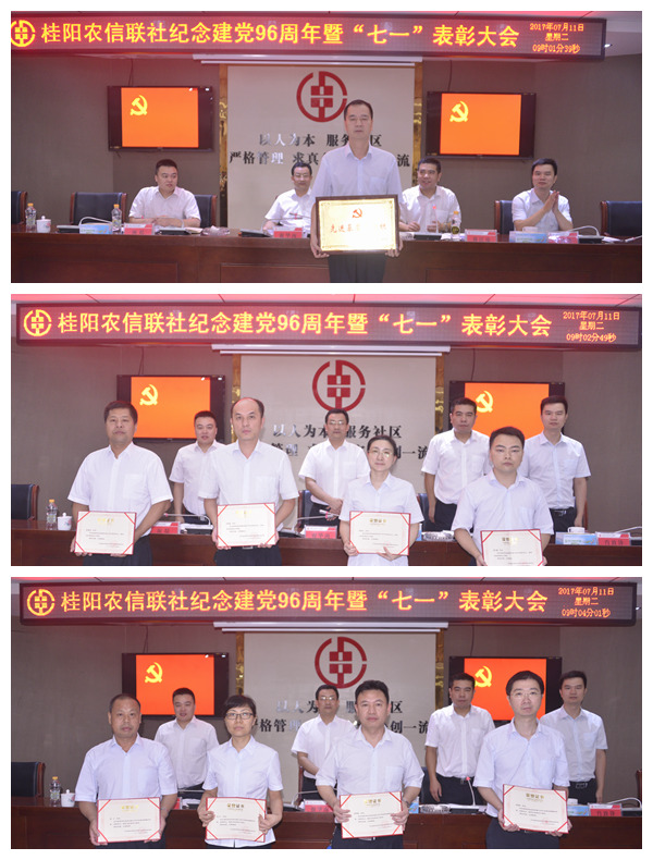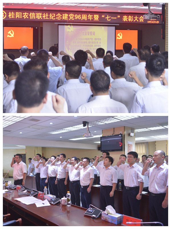 7月11日上午,桂阳农信联社党委召开纪念中国共产党成立96周年暨“七一”表彰大会,联社机关全体党员、各党支部委员、优秀党员代表等参加会议,机关部室负责人、各信用社主任等列席会议。