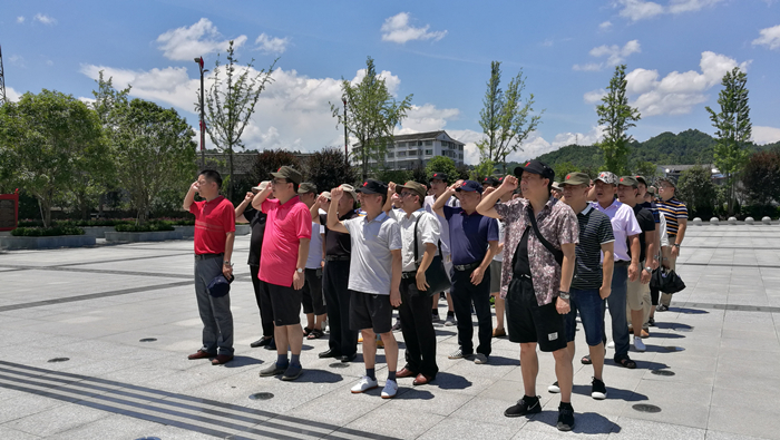 随后,一行人抵达通道县溪镇,参观了通道转兵纪念馆和恭城书院。在纪念馆广场上,党委书记蒋松平和纪委书记丁希军向纪念碑敬献花篮,深切缅怀为民族独立和国家解放英勇献身的革命先烈,并带领全体党员在纪念雕像前重温了入党誓词。“我志愿加入中国共产党,拥护党的纲领……”党员们举起右手庄严宣誓,以入党时的热忱和激情重温了入党誓词,坚定了自己的理想信念,再一次接受心灵的洗礼。