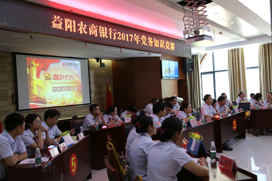 为庆祝建党九十六周年,以良好的风貌迎接党的十九大召开,2017年7月21日上午,益阳农商银行举办了“学党务 强本领”党务知识竞赛。此次竞赛旨在进一步增强广大党员干部的党性修养、纪律观念和廉洁自律能力,深入推进“两学一做”常态化和党风廉政建设,进一步夯实基层党组织建设基础。