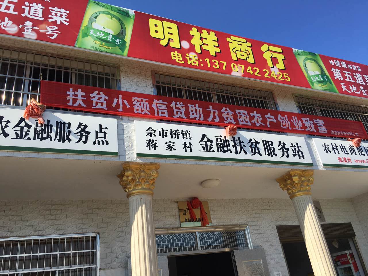 金融扶贫服务站外悬挂宣传横幅