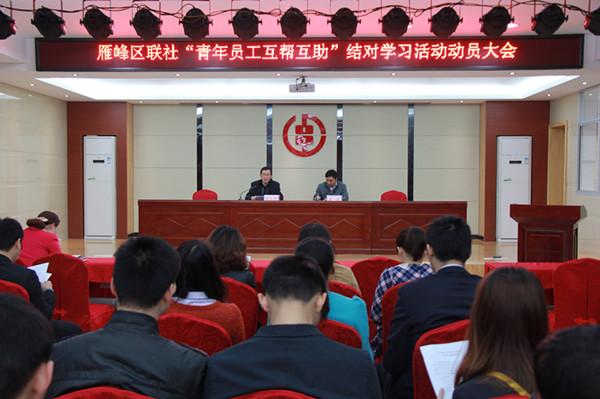 近日,衡阳市雁峰区联社开展青年员工“互帮互助”结对学习活动,72名青年员工将参加为期一个月的结对学习。 本次学习活动采取一帮一的形式,通过不限学习岗位、自由选择学习对象及学习内容,规定每位青年员工每周向指导老师学习不少于三次,为青年员工搭建学习、锻炼、成长的平台。活动结束后,该联社将对青年员工学习成果进行综合考评,并邀请优秀青年员工进行典型发言。
