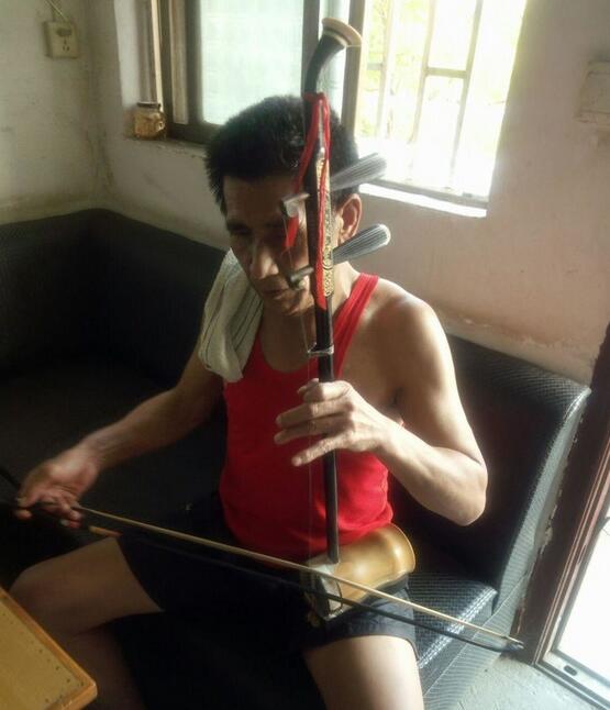 盲人老伯用优美的二胡声表达心中的喜悦与感激之情