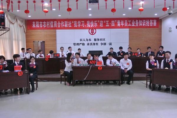 5月2日,耒阳联社举办“我学习•我快乐”迎“五.四”青年员工业务知识抢答赛。来自辖内27个基层网点30名选手组成的五支队伍参加了比赛。抢答赛分必答题、抢答题、风险题等环节,选手们以积极的态度、饱满的热情、敏捷的思维参赛,充分展示了青年员工爱岗敬业、团结合作、拼搏向上的良好精神面貌。