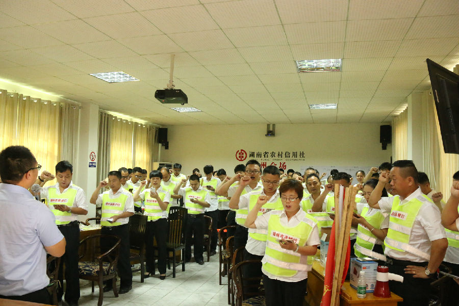 坚定信心,下定决心。8月3日上午,靖州农商银行全体客户经理齐聚总行四楼会议室,进行清收出征宣誓,坚定清收信心,明确清收目标。夏日的太阳毒辣似火,却丝毫没有阻挡清收小组人员收贷的决心。