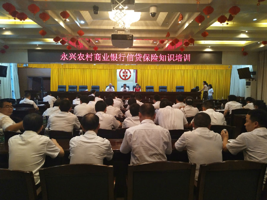 为了顺利开展保险代理业务,8月10日下午,永兴农商银行在总行八楼会议室举办了银行信贷保险知识培训,各支行行长、委派会计、部门经理共计五十余人参加了培训活动。