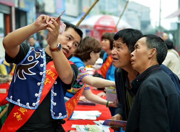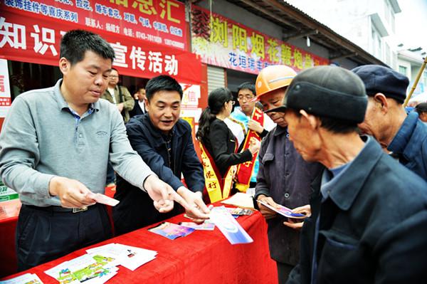5月19日,湘渝边区“苗汉双语”金融知识联合宣传活动在花垣县边城镇举行。本次活动由人民银行湘西州中心支行、黔江中心支行联合举办,花垣县联社协办。重点宣传反假币、反洗钱及国库券、征信条例、残损币兑换等金融知识。